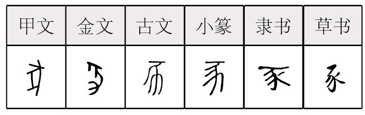 shǐ象形,甲骨文、金文象大腹、垂着短尾的猪形,《说文》古文、小篆字形稍变,隶定为“豕”。本义为猪,也指野猪。 【辨析】 以“豕”作意符构成的字多指各种猪的名称、类似猪的兽类名、猪的动作、与猪有关的事物等,如“豚、豪、豢”。豕 (shǐ)豬面凹,四足竭尾。 【按】豕,古文作 、 、 ,象豬形,長吻,大腹,四蹄,有尾。豕爲豬的一種,面部凹陷,短尾巴。 豕 甲 金 篆 隶shǐ【析形】象形字。甲骨文字形像有个大肚子的猪。金文字形上部是猪头,两侧是两只左右张开的大耳朵,其下有腿和尾。小篆字形基本失去了猪的模样。古文字形中“豕”和“犬”的字形比较接近,区别在于,“豕”字形体突出鼓腹、垂尾,“犬”字形体突出瘦长、翘尾。 【释义】《说文》:“彘也。”本义是猪。豕(猪)在中国文化中的含义是蠢笨、懒惰、贪婪、丑陋,故在中国传统文化的十二生肖中,豕居最后一位。豕是古代中国主要的肉类食物,又是古代祭祀的主要祭品。豕与牛、羊等作为古代祭祀的大三牲,或与鸡、鱼并称为小三牲。 【shape analysis】It is the pictograph character.In Oracle,the character is shaped like a pig with big abdomen.In Bronze Inscriptions,the upper part is the pig head,and two open ears on the two sides,the lower part is legs and tail.豕is similar to犬.But the difference lies in that豕has bulging abdomen,hanging tail while犬is usually long and thin and has a raising tail. 【original meaning】Pig. 豕 ☚ 医 佞 ☛ 00000451 |