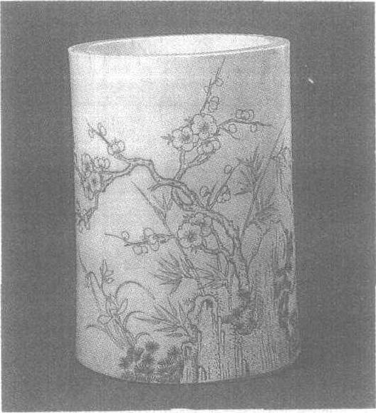 字词 | 象牙雕梅竹兰松石图笔筒 |