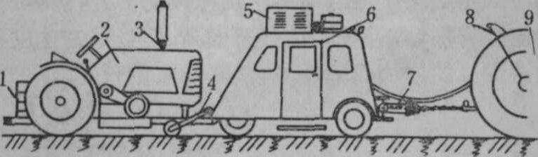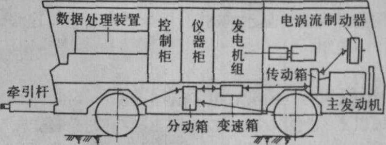 释义 | 负荷车dynamometer vehicle用于对所牵引的汽车、拖拉机及工程机械等被测车辆施加可调的、平稳的牵引阻力,以测定和记录牵引试验各参量的专用车辆。1929年苏联拖拉机科学研究所(HATH)用拖拉机改装了机械制动式负荷车。20世纪70年代以来,负荷车相继采用了电涡流制动器、排气制动等吸功(加载)装置,非电量电测仪器系统和自控装置以及微处理机数据处理装置等装备。 图1 负荷车示意图 1. 荷重; 2. 负荷车; 3. 排气制动阀; 4. 第五轮; 5. 空调装置; 6. 仪表车厢; 7. 拉力仪;8. 转速测定装置; 9. 被测车辆 吸功装置 是负荷车产生牵引阻力的主要设备。试验时汽车、拖拉机等通过牵引杆拖曳负荷车等速前进。负荷车的车轮与试验路面附着力经传动系统传到吸功装置的轴上,与吸功装置产生的阻力矩相平衡。调节此阻力矩数值就能对被测车辆产生可调节的平稳的牵引阻力。负荷车的吸功装置可采用电力式(电涡流制动器、直流发电机等)、液力式(液压油泵和液压系统节流阀控制)、气力式(利用发动机排气节流)、机械式(内燃机及摩擦制动器)及其混合形式的加载设备。其中风冷式电涡流制动器(图2)具有重量轻,结构紧凑,吸收功率大,便于自动控制等特点,应用日趋广泛。有的负荷车为保证车轮与试验路面稳定的附着性能,设有清洁试验跑道的吹风清扫装置。 图2 以电涡流制动器为吸功装置的负荷车 测试仪器 包括各种传感器、二次仪表、数据处理装置及控制系统(图3)。牵引试验所测量的参数及匹配仪器主要有: ❶测量牵引力用液压自记拉力仪、电拉力仪或在牵引杆(牵引杆应具有保持水平免受弯曲载荷的结构)内设置拉力传感器。 ❷测量行驶速度用第五轮。它可以准确测出车辆的行驶距离、时间和速度。第五轮是通过轮架固定在负荷车上贴着地面自由滚动的轮子,并带具有一定齿数齿盘的磁电式传感器或具有一定孔数孔盘的光电式传感器,将行驶距离转换为断续脉冲电信号,然后输送给计数器,每一脉冲相当于一定行驶距离,由计时器同步测得行驶时间,经运算得到行驶速度;还可在试验跑道固定测区的两端涂以白色反光横线,用安装在负荷车下端的光电触发系统控制计时器的启与停,依此求出行驶速度;用多普勒雷达测速仪或光电测速仪等能测出负荷车的瞬时行驶速度。 ❸测量燃油消耗量的装置有量管式燃油油耗仪、活塞式油耗仪和组合式油耗仪。后者由流量传感器、油温传感器和微处理机组成。 ❹测定发动机、驱动轮或动力输出轴转数的设备常用可产生60个(或若干个)电脉冲信号的磁电式或光电式传感器。 ❺测量滑转率的装置。可由待测车辆空车和负载驶过测区时测得的动力输出轴转数(左右驱动轮的平均转数)或行驶速度计算而得。其它还有测量噪声、油温、相对湿度、大气压力等仪表。有的还配有专用型或通用型多功能综合测量仪,监测用的数字显示器等。 图3 负荷车测试系统框图 供牵引试验用的数据处理装置,有专用数据分析仪和微处理机。最终以曲线和数字打印输出试验结果。监视仪器可显示瞬时值,微处理机还可实现测试的自动控制。 负荷车loadin g car,loading vehicle一种测定拖拉机牵引力的加载车辆。由仪表车及加载车等组成。两者可制成一体,车的前半部安装测试仪表,后半部为加载的荷重,由拖拉机牵引在田间或试验路面进行牵引试验。负荷车可用以测试拖拉机的牵引特性,也可用来测试轮式拖拉机轮胎的性能及其他试验。 |