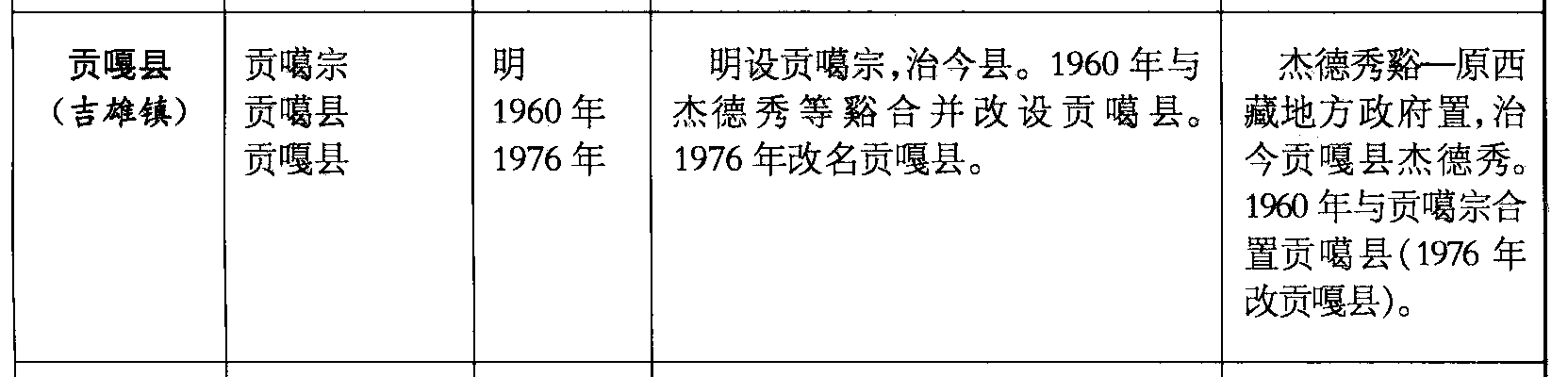 贡嘎县(吉雄镇)贡噶宗贡噶县贡嘎县明1960年1976年明设贡噶宗,治今县。1960年与杰德秀等谿合并改设贡噶县。1976年改名贡嘎县。杰德秀谿—原西藏地方政府置,治今贡嘎县杰德秀。1960年与贡噶宗合置贡噶县(1976年改贡嘎县)。