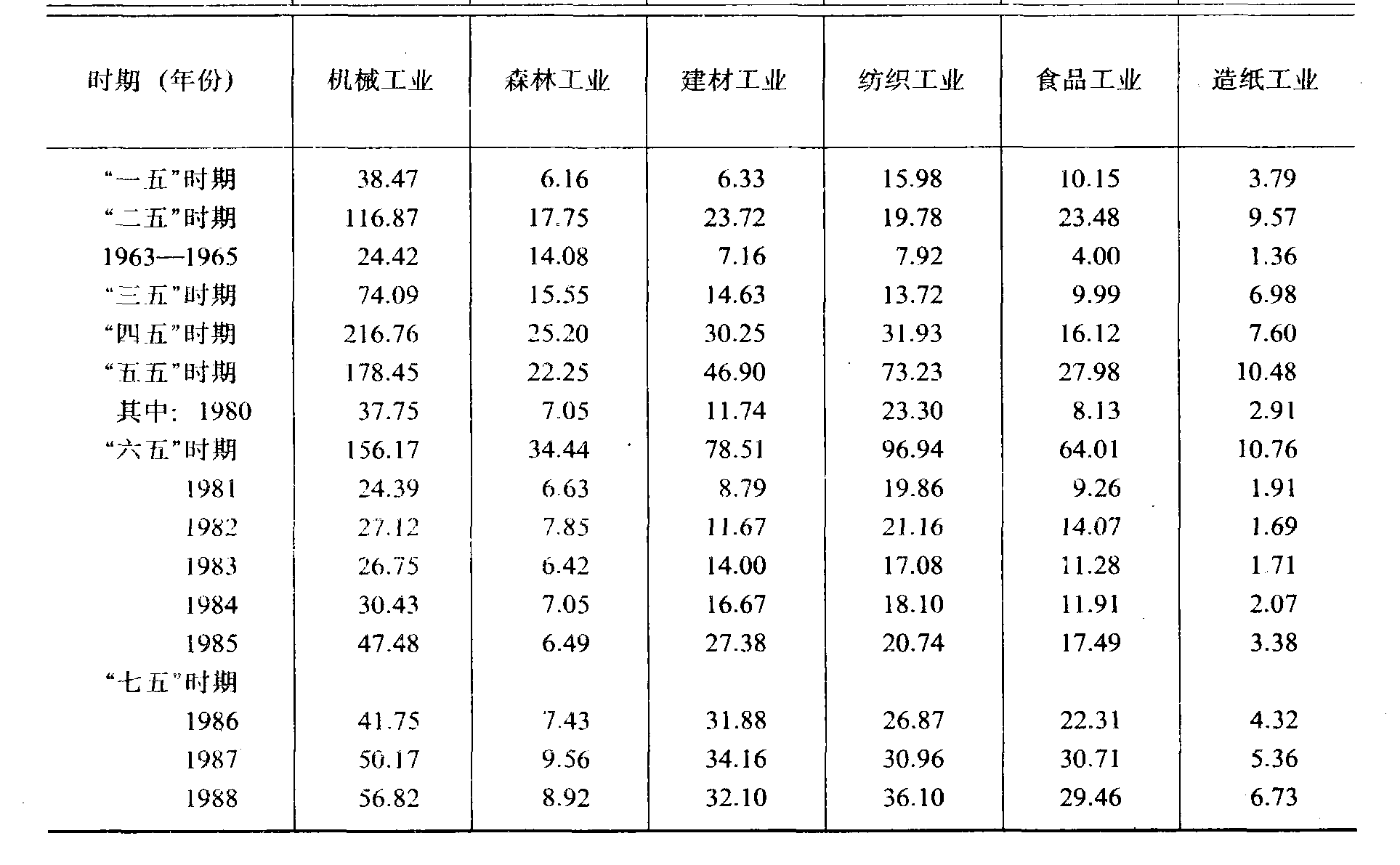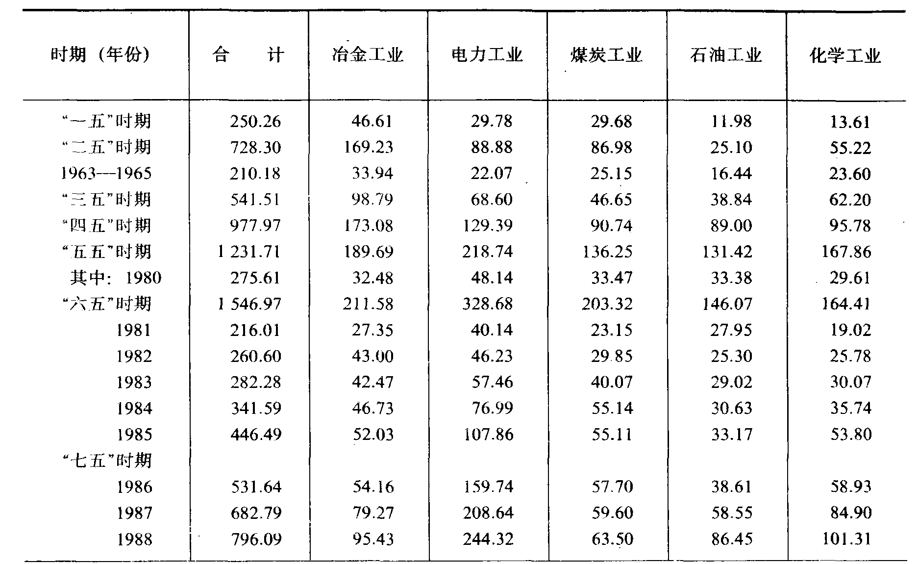 工业各行业基本建设投资