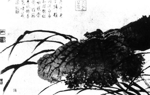 释义 | 写生册·青蛙白荷 【作品赏析】: 此册杂画动植物,共十六页,多为粗笔泼墨,其画法与宋人法常一派很相近。 这一页,先用粗笔浓墨画出青蛙与荷叶,一派生机;再以焦墨画芦草,笔力劲爽,如有风动;而用淡墨勾勒并烘染托出白荷。草草点染,率意而成,具有更多的文人墨戏的意趣。展玩此图,若有清风徐来,荷香四溢,蛙声在耳。 画面上有清代乾隆“太上皇帝”朱文印一方,并题诗一首:“卉中君子号虽同,淡白应知胜艳红。 水镜当前难辨色,只饶香气喷翁蒙。”诗后更钤一印:“几席有余香”。欣赏之情,溢于言表。 明代前期,已有画院画家林良等人用水墨创作写意花鸟,至沈周画花鸟虫鱼,或水墨,或设色,笔墨已在欲放未放之间。 后经陈淳的发扬光大,开启了徐渭的泼墨写意,再经清代八大山人、“扬州八怪”的推波助澜,终于形成一股巨大的潮流,至今不衰。 沈周在写意花鸟画发展史上的地位,是不应忽视的。 。明 沈周 册页 纸本水墨 纵34.7厘米 横57.9厘米 |