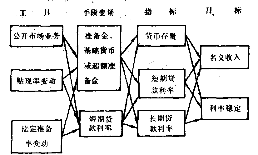 释义 | 货币政策的工具 货币政策的工具货币当局以之达到直接调节目标的手段。一些经济学家认为应当把货币政策工具划分为两类:一类是一般性控制工具;另一类是选择性控制工具。一般性工具是指那些传统的、经常运用的、能对整体经济运行发生影响的工具,如公开市场业务、法定准备率、贴现机制等等;选择性控制工具则是指那些只起到加强或改进货币政策对特殊领域作用的工具,如对证券市场的控制和管理等等。 图1—14 在许多货币银行学教科书中,对货币政策工具与货币政策手段一般不做区别。但在近年来出版的一些货币经济学教科书中,则对工具和手段从作用上作了明确的区分。区分的理由是:工具的作用主要是改变了银行的准备金和短期贷款利率,与高就业和价格稳定等目标还有一段距离。银行准备金和短期贷款利率的变化影响名义收入进而影响就业和价格水准还需要一段时间。为此,在货币当局在其政策工具和最终目标之间,插进了两组中间变量。第一组称中介指标,由直接影响总需求进而影响名义收入的各个变量组成,如货币存量和长期贷款利率。但是货币当局也不能直接通过货币政策工具来实现这些目标。这样,又产生了一组可称为手段的次一级目标,或者说是介于工具和中介指标之间的近似指标。这些变量也是货币当局可以直接干预的。这样,货币当局的政策工具和目标之间的关系就如图1—14所示。 ☚ 股权收益率指标 货币调节传导机制 ☛ |