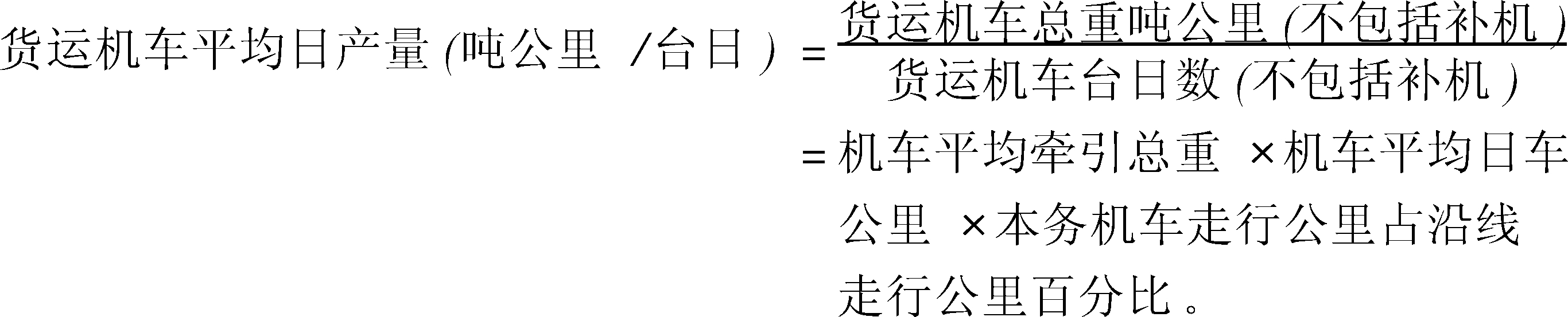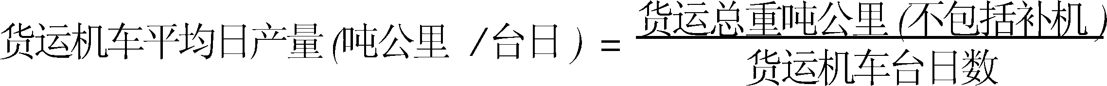 释义 | 货运机车平均日产量 货运机车平均日产量freight locomotive gross ton-kilometers per locomotive day简称“机车日产量”,又称“货运机车生产率”。平均每台货运机车在一昼夜内完成的总重吨公里数。从货运机车在时间和牵引能力的利用两个方面,综合反映货运机车运用效率的指标。其计算公式为: ☚ 机车辅助走行率 列车编组顺序表 ☛ |