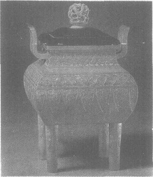 释义 | 贴黄蝉纹方鼎 贴黄蝉纹方鼎清。腹长12.5厘米,宽9.5厘米,足长8.9厘米,宽7厘米,通高24.1厘米。北京故宫博物院藏。仿青铜鼎形。方口,直颈,双耳,鼓腹,四柱足。有一紫檀盖,盖上饰透雕螭纹竹钮。鼎通体贴黄。颈、腹、足均以回纹作地,上饰兽面纹、蝉纹、蕉叶纹及海浪纹等。工艺相当精致。贴黄见“贴黄蕉叶纹长方盒”条目。 ☚ 贴黄三足炉 贴黄鼻烟壶 ☛ |