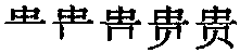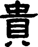 ɡuì貴,形声,小篆从貝,臾(kuì)声,本义为物品的价格高,引申为地位高、珍贵、重要等。《简化字表》类推简作“贵”。 【辨析】 以“贵”作音符构成的形声字读音不同。kuì:溃、匮、愦、蒉、馈、篑、聩∣huì:缋∣wèi:遗。贵 貴; 篆 隶guì【析形】形声字。小篆字形从贝, (guì)声。从贝,表示与钱物有关。隶书字形变后上半讹变。 【释义】《说文》:“物不贱也。”本义是物价高,与“贱”相对。后引申为贵重、尊重、重视、地位显赫等义。又经常放在要称说的事物前面,表示尊敬,作谦辞,如[贵姓]、[贵国]、[贵校]等。[贵人多忘]本指地位高的人对人或事傲慢,不念旧情。后形容人善忘。[贵庚]庚:年庚、年龄。问人年龄的敬辞。 【shape analysis】It is the pictophonetic character.In Small Seal script the meaningful part is贝(bèi,cowry).The phonetic component is臾(guì).It is related to the treasures. 【original meaning】High prices,contrary to cheap. |
