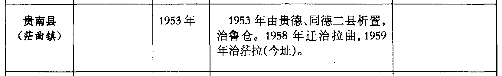 贵南县(茫曲镇)1953年1953年由贵德、同德二县析置,治鲁仓。1958年迁治拉曲,1959年治茫拉(今址)。