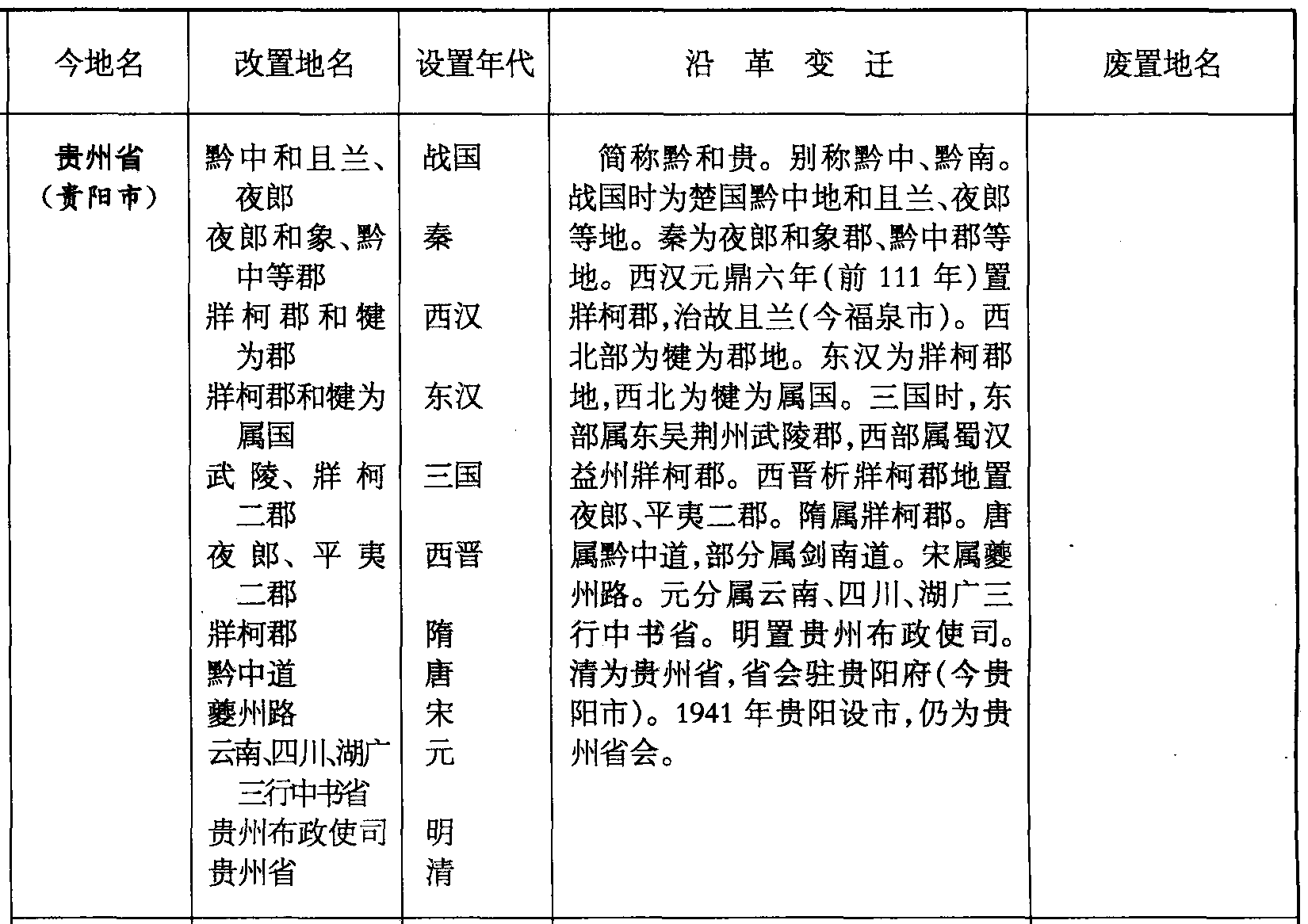 简称黔和贵。别称黔中、黔南。战国时为楚国黔中地和且兰、夜郎等地。秦为夜郎和象郡、黔中郡等地。西汉元鼎六年(前111年)置牂柯郡,治故且兰(今福泉市)。西北部为犍为郡地。东汉为牂柯郡地,西北为犍为属国。三国时,东部属东吴荆州武陵郡,西部属蜀汉益州牂柯郡。西晋析牂柯郡地置夜郎、平夷二郡。隋属牂柯郡。唐属黔中道,部分属剑南道。宋属夔州路。元分属云南、四川、湖广三行中书省。明置贵州布政使司。清为贵州省,省会驻贵阳府(今贵阳市)。1941年贵阳设市,仍为贵州省会。