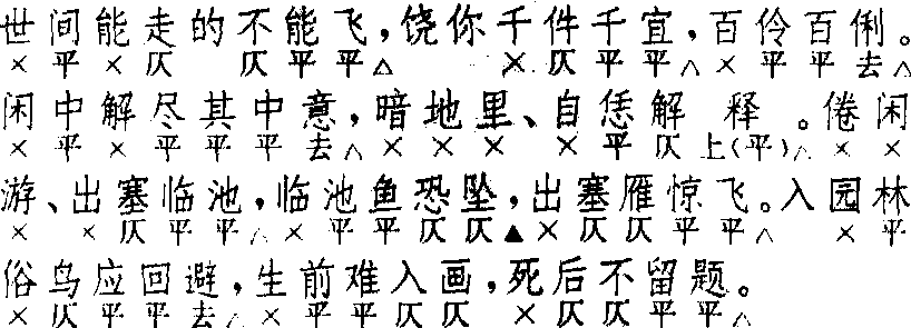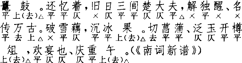 释义 | 贺新郎 贺新郎词牌名。又名《金缕曲》、《金缕词》、《金缕歌》、《乳燕飞》、《贺新凉》等。双调一百十六字, 上下阕各六仄韵。余为变格。又曲牌名。南北曲均有,均入南吕宫。北曲字句格律与词牌异,用在套曲中。南曲有二,一与词牌上阕同,用作引子;一与词牌异,亦与北曲异,用作过曲。参见“常用词谱”类。 ☚ 摸鱼儿 兰陵王 ☛ 贺新郎 贺新郎此词抒激壮之情宜用入声,抒凄郁之情宜用去声。 ☚ 摸鱼儿 兰陵王 ☛ 贺新郎 贺新郎钟嗣成 《自序丑斋》套 ![]() 全曲十一句:7△,4△,4△。7△,7△。7△,5▲,5△。7△,5,5△。第二、三句须对。第七、八句及第十、十 一句,作者多用对语。第六句属上属下均可。第七句可收平声,如关汉卿《谢天香》“除籍不为娼”,《玉镜台》“取水垂辘轳”。末二句可作七字句,如关汉卿《拜月亭》、《谢天香》。减第五句者,有孛罗御史“懒簪獬豸冠”套、郑廷玉《金凤钗》、罗贯中《风云会》三例。宋词及诸宫调均有〔贺新郎〕,诸宫调比词牌多了一些变化。南〔南吕〕慢词(引子)同词牌,过曲有所变化。北曲词式相对要丰富得多:首句七字,接着两个四字句,与诸宫调相当;中间三个七字句,句数相同;后部北曲两联五字句,诸宫调只作两个六字折腰句,南过曲亦只作两联三字句,北曲是大大发展了。 ☚ 菩萨梁州 斗虾蟆 ☛ 贺新郎 贺新郎无名氏 《分镜记》 ![]() 全曲十句:4,7△。7△。3,7△,7△。3,3△。8△,6△。第九句可作上三下五、上五下三或上一下七式八字句;亦可作普通七字句,即减去八字句的句首一字。联套时与〔节节高〕联成短套,如《东郭记·一妾》用〔贺新郎〕三支、〔节节高〕二支,《邯郸记·入梦》用〔贺新郎〕二支、〔节节高〕二支,《赠书记·花烛猜谜》用〔贺新郎〕二支、〔节节高〕一支。〔贺新郎〕套数不多见,作者多用〔梁州新郎〕套。与词牌不同。《杀狗记·乔人算帐》、《双珠记·军门优恤》、《鸣凤记·邹慰夏孤》所用〔贺新郎〕,均为词牌。南北曲均有〔贺新郎〕,皆出于词牌,各有变化增减。以〔贺新郎〕为主的集曲有〔新郎抚孤雁〕,见《南词简谱》。 ☚ 梁州新郎 节节高 ☛ 贺新郎 贺新郎又名《乳燕飞》、《贺新凉》、《风敲竹》、《金缕歌》、《金缕曲》、《金缕词》、《貂裘换酒》、《金缕衣》,《风瀑竹》,清人又有名《雪月江山夜》者。见宋苏轼《东坡乐府》。杨湜《古今词话》云:“苏子瞻守钱塘,有官妓秀兰天性黠慧,善于应对。湖中有宴会,群妓毕至,惟秀兰不来。遣人督之,须臾方至。子瞻问其故,具以发结沐浴,不觉困睡,忽有人叩门声,急起而问之,乃乐营将催督之。非敢怠忽,谨以实告。子瞻亦恕之。坐中倅车属意于兰,见其晚来,恚恨未已。责之曰,必有他事,以此晚至。秀兰力辩,不能止倅之怒。是时榴花盛开,秀兰以一枝藉手告倅,其怒愈甚。秀兰收泪无言,子瞻作《贺新凉》以解之,其怒始息。”胡仔《苕溪渔隐丛话》驳之甚详,并谓:“此词腔调寄《贺新郎》,乃古曲名也。今乃云取其沐浴新凉,曲名《贺新凉》,后人不知之,误为《贺新郎》。”然云《贺新郎》为古曲名,则不知何据。《词律》卷二○列毛开及高观国所作。《词谱》卷三六因苏轼词下片“花前对酒”句少一字,且格调未谐,故以叶梦得所作(睡起流莺语)为正体,双调,一百十六字,上、下片各十句六仄韵。《词谱》收别体十种。 ☚ 贺明朝 贺新凉 ☛ 贺新郎鹤发开元叟。也来看、荆高市上,卖浆屠狗。万里风霜吹短褐,游戏侯门趋走。卿与我、周旋良久。绿鬓旧颜今改尽,叹婆娑、人似桓公柳。空击碎,唾壶口。 江东折戟沉沙后。过青溪、笛床烟月,泪珠盈斗。老矣耐烦如许事,且坐旗亭呼酒。判残腊、消磨红友。花压城南韦杜曲,问球场、马弰还能否? 斜日外,一回首。 康熙六年(1667)秋,作者守制期满,由扬州回到北京,在扇头看到曹实庵《贺新郎》“咄汝青衫叟”赠柳敬亭词。抚今思昔,感念柳生虽穷途寥落,憔悴京门,而意气犹存,滑稽仍旧,其为人有足多者,因援笔次韵,作成此词,盖亦赠柳之作也。曹实庵,即曹贞吉,字升六,号实庵,山东安丘人,行辈略后于作者,时为中书舍人。工诗词,词风雄浑苍莽而语多奇气。柳敬亭,明末泰州人,本姓曹,避仇流落江湖,尝休息于柳树下,乃改姓柳。善说书,曾客于明宁南侯左良玉幕下,受到宁南的礼遇,军中呼为柳将军而不名。左 良玉殁后,所部数十万众在九江溃散,不久清兵渡江陷南京,柳敬亭浪迹各地,重操旧业。他眷怀故国,富有爱国思想,借说书抒发胸中愤慨悲凉情绪。吴伟业、黄宗羲皆作有《柳敬亭传》。 上片起三句,感慨悲歌,点明人物正在燕京。首句“鹤发开元叟”,“鹤发”,白发,“开元叟”,表明其为前朝旧人。这句以唐代著名乐师李龟年比柳敬亭。李龟年在开元中供职梨园,经过安史之乱,流落江南,不知所终。柳敬亭的身世和李龟年有相似之处。他们都是一代著名艺人,都富于爱国思想,都曾经遭逢丧乱,以后都沦落江湖,度过白发的晚年。词称柳敬亭为 “鹤发开元叟”,真是恰当不过。二、三两句“也来看、荆高市上,卖浆屠狗” ,“荆高”,指战国末期燕国的荆轲、高渐离。荆高市,即燕市,指燕京。荆轲为燕报秦仇,临行曾悲歌于易水之上,高渐离击筑和之,为变徵之声,士皆泣涕。事见《史记·刺客列传》。“卖浆屠狗”,“卖浆”,卖酒者; “屠狗”,卖狗