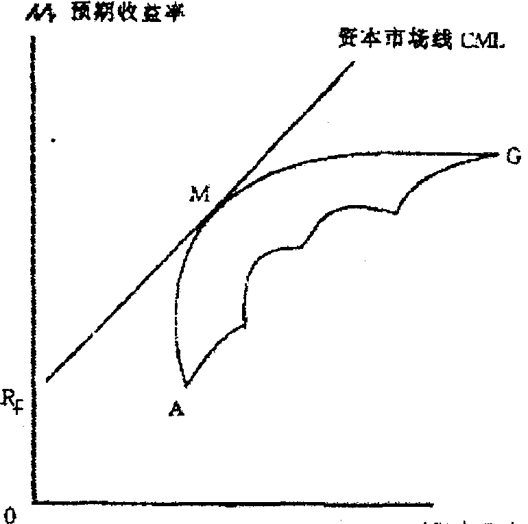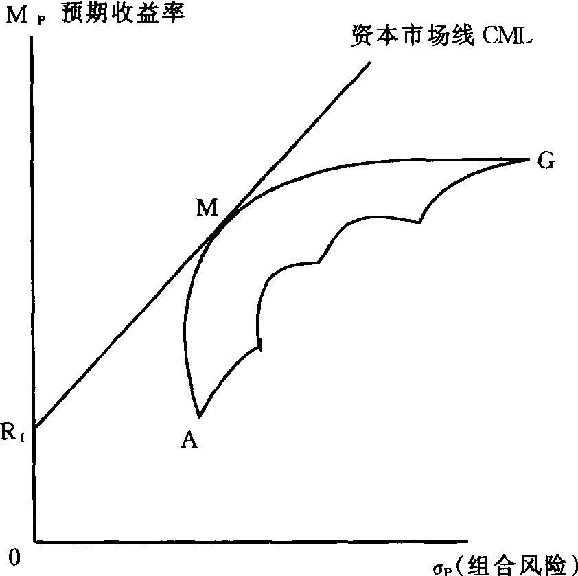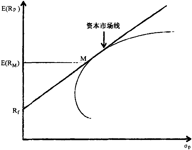 释义 | 资本市场线Capital Market Line以图形反映的资本资产定价模型。在有效资本市场中,反映一个证券投资组合的收益和风险线性关系的直线。其中以无风险的政府证券投资收益为一点,以最高风险证券投资的收益为另一点,两点之间的直线即为资本市场线。在图上纵轴表示收益率、横轴表示风险系数。资本市场线的斜率反映市场风险溢价,斜率越大,证券的收益率越高。 资本市场线有效投资组合的预期报酬率和其风险之间的关系。如图Rf点表示无风险证券的报酬率,简称无风险利率,即投资人可在无风险的利率水准Rf下,借入或贷出资金,则自Rf点引一条直线与有风险下的有效边界AMG相切于M点,这条直接就称为资本市场线 (CML),是可以无风险利率来借入或贷出资金情况下的有效世界。 资本市场线 资本市场线有效投资组合的预期报酬率和其风险之间的关系。如图10-35Rf点表示无风险证券的报酬率,简称无风险利率,即投资人可在无风险的利率水准R1下,借入或贷出资金,则自Rf点引一条直线与有风险下的有效边界AMG相切于M点,这条直线就称为资本市场线(CML),是可以无风险利率来借入或贷出资金情况下的有效世界。 图10-35 ☚ 超买超卖指标 证券评价模式 ☛ 资本市场线 资本市场线刻划证券组合预期收益与风险之间的关系,相应地指出如何适当度量一个组合的风险的理论构架,“资本资产价格模型”理论的重要组成部分。了解资本市场线,可以更好地了解证券市场线从而更广泛了解市场上风险一收益相交换的情况。 图6—28 图6—28中γf代表无风险证券收益,AME曲线是马柯威茨的有效边界,γfMB是一条成比例的直线,意思是处于这条线上的各种组合,其收益与风险的交换是等比的。此线从γf开始,在M点与AME曲线相切,然后一直通向B。γfMB是夏普重新定义的有效边界。它所以与马氏的有效边界(AME)不同,主要原因在于,在夏普的假设中,投资人是可以借入资金来购买证券的。M点代表一种市场组合,亦即有风险证券的有效组合,并且,包括M在内各种按无风险利率计算的资金借贷所组成的有效组合,均处在这条线上。因为它们在一定的风险上,其收益都比在γfMB直线以下的任何一个组合,包括AME曲线上的各个组合为高。处于γfMB线上的组合,均较优于处于AME线上的纯由风险证券建成的组合。线上从γf到M这一段,表示投资者把资金投在无风险资产上。作为一种无风险贷款,如果指的是美国的国库券,就意味着投资者给予联邦政府一笔无风险贷款。线上从M到B,甚至再往前伸的一段,表示投资者可无限制地借钱来投在有风险的证券上,其利率与无风险贷款一样。因而,有了按无风险利率借入和贷出资金的机会和能力,有效边界遂由马氏AME曲线变成为夏氏γfMB直线。投资者可以在这条线的各点上结合M和γf,或借入更多资金投在M上而组成所需要的组合。在这里M点被认为是最佳的组合,因为与γf相结合,在马柯威茨的一套有效的组合中,除了M外,没有其他组合(不在线上)与位于线上的任何组合,其风险相同而预期收益比它更高的了。一般都把γfMB线与AME曲线相合的那一点,即切点M看作是市场组合,在均衡情况下,它所包括的所有证券是与其市场价值成比例的。 概括而言,由投资者混合市场组合和无风险证券的投资所形成的γfMB线,称为资本市场线。其含义可从无风险收益率和市场的预期收益两方面用数学公式表示如下: 用文字说明就是,资本市场上的一个证券组合的预期收益E(γP),等于无风险证券的预期收益(γf)加上每单位风险的预期收益。前一部分可以说是“时间的价格”,后一部分可以叫作“风险的价格”。公式的后一部分是资本市场线的坡度,等于市场组合的预期收益与无风险证券收益之差(E(γm)—γf)除以市场组合的(δm)商,它表明,证券组合的风险每增加一个单位,应增加多少预期收益。例如:γf=10%,E(γm)=15%,δ=20%,代入公式: ![]() ☚ 防守性证券 证券市场线 ☛ 资本市场线 资本市场线Capital Market Line由无风险资产与有风险资产共同构成的所有资产组合集合的效率前沿(参见“资产组合的风险”和“资产组合的收益”)。资本市场线可用下述公式表示: 式中:E(RP)——资产组合的期望收益;E(RM)——市场资产组合的期望收益;σP——资产组合的标准差;σM——市场资产组合的标准差;Rf——无风险资产的期望收益(见图6-9)。 图6-9 资本市场线 投资者可以根据自己对收益和风险的偏好在资本市场线上移动,选择最适合于自己的投资组合,并获得最大效用。所有的组合都是由于投向有风险资产的资金比例不同而形成的。一般我们可以利用下列公式算出资本市场线上每一个投资组合的期望收益与标准差: E(RP)=WME(RM)+(1-WM)RfσP=WσM 式中:WM——市场投资组合在资产组合中所占权重;E(RM)——市场资产组合的期望收益;Rf——无风险资产的期望收益。 资本市场线的主要意义是要获得较大的报酬率就一定要承担较大的风险。资本市场线实际上是无风险借贷条件下的效率前沿,资本市场线上的每一个资产组合仅包含系统风险,总风险中的非系统风险可因投资多元化而有效地除去。 ☚ 资产组合的效率前沿 资本结构理论 ☛ 资本市场线 资本市场线capital market line,CML资本市场线的斜率等于市场证券组合预期收益率与无风险证券预期收益率之差( 资本市场线的垂直截距常常被视为是时间等待的报酬,其斜率常被认为是承受