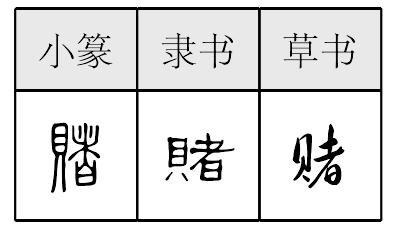 【提示】者,8画,旧字形9画,日上多一点; 下面的日,中间一横宋体与两边相接,楷体与左边相接,与右边相离。 *赌(賭)dǔ12画 贝部 (1) 拿财物作注比输赢: ~注|~具|~徒|聚~。 (2) 泛指比输赢: 打~。 赌賭dǔ中古形声字。从贝(貝),者声。音变如都堵等例。指以财物作注比输赢。现代也说赌博(古代博指下棋等,不一定赌钱)。引申指对一般事争输赢。 如:打赌|赌输赢。组词如:赌气(指因不服气而任性做事)。如:他赌气走了。 赌賭★繁◎常★常