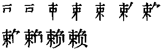 【提示】束,中间是口、是竖, 不是 、 竖钩; 位于字左时,末笔捺改点。 *赖(賴)〔頼〕lài13画 刀部 (1) 仗恃;倚靠:依~|仰~|有~于诸位。 (2) 硬不承认事实、错误;推脱责任:~账|~婚|抵~|~是~不掉的。 (3) 蛮不讲理,撒泼取闹:无~|耍~|~皮|二~子。 (4) 强留某处,不肯离开:~着不走|~在家里,就是不去学校。 (5) 硬说别人有过失;怪罪; 责备:自己错了,不能~别人。 (6) 归咎于,怪罪:这次足球输了,全~教练指挥不当。 (7) 不好;次;差:庄稼长得真不~|好~给我物色个帮手|好的~的我都能吃饱。 赖賴頼lài古代形声字。从贝(貝),刺(刀在贝上变形)声。韵变如罢摆、察蔡、叉钗例(只刺是入声)。古贝就是钱财。本赢利、利益义。字形中古以来或讹变为从束从頁。现以为异体字。见《异体字表》。引申为依靠,仗恃。如:有赖于共同努力。组词如:依赖。又引申为抵赖,不承认以前的事。如:赖不掉的帐。再引申为诬赖,硬说别人有过错。如:不能赖别人。又引申为怪罪,责备。如:只能赖自己不努力。方言指不好,劣,坏。如:真不赖(可能是“坏”的转音)。 赖賴★繁◎常;頼★异◎异★常