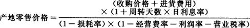 释义 | 农产品产地零售价格 指产地零售商业企业向个人消费者、集团消费者出售农副产品的价格。 它由收购价格和购零差价构成。实际工作中,一般按上级规定的农副产品购零差率,以顺加作价办法计算。其计算公式为: 在实际工作中,为了简化计算手续,经常使用下列公式: 产地零售价格=产地收购价格×(1+购零差率) 或:产地零售价格=批发价格×(1+批零差率) |