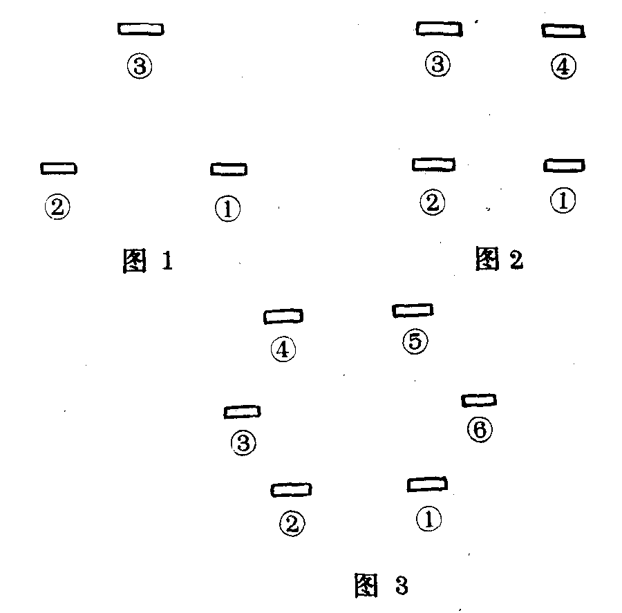 ❷砖。如此递相过闪,左右互换进行练习(见图1)。“走四方形”:以练者一步宽为边长,用砖在平地上排成一等边四方形。练习时,先以左、右脚分立❶、