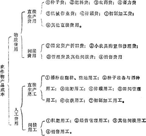 释义 | 农作物生产成本 “农作物产品生产成本”的简称。 农作物产品在生产过程中发生的费用。主要指在耕地面积上种植的粮食、棉花、油料等农产品的成本。是农作物生产过程中耗用的生产资料和人工费用的总和。在国营农场中,农作物成本的费用项目由国家统一规定,共有12项: 农村集体所有制农业单位和农户的农作物生产成本。包括物质费用和人工费用两大项。具体内容如表所示。 农作物产品成本可以分为主产品成本、单位面积成本、单位面积主产品成本和主产品单位成本。 其计算公式是: 农作物产品成本是农作物产品生产过程中物化劳动的转移价值和活劳动中必要劳动部分创造价值的货币表现,是制定农作物产品收购价格的基础,也是反映农作物生产水平的综合性指标。 正确调查核算与分析农作物产品成本,是改善经营管理,提高经济效益的重要环节,也是制定合理收购价格的重要依据。我国农作物产品成本的数字资料,主要是由各级物价部门和业务主管部门在生产条件不同的调查点调查取得,反映优、中、劣三种生产条件的平均成本水平。 |