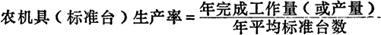 农机具工作效率也叫机组生产率,是反映农机具利用的经济效果指标。通常用一定时间内农机具完成的作业量或产量表示,例如用平均每一作业班完成的作业量或每一标准台年平均作业量表示。