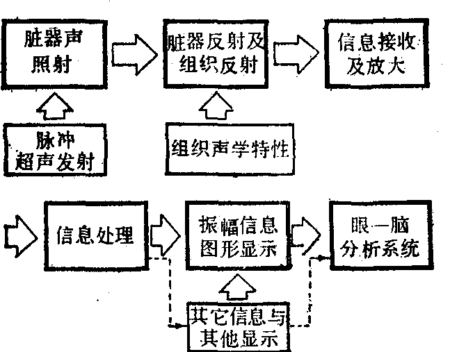 超声帧图的线密度与电视扫描线数的乘积为每帧声象图的象素,该象素与字符显示的象素之和为总象素。总象素与帧频相乘则为每秒写、读的象素,通常为512×512×30=7,864,320象素,有的可高至15,728,640象素; ❹数字扫描处理器(DSP): 在数字扫描转换技术基础上发展更多功能,以快速完成输入处理,按时间顺序处理数据,复合新旧图象,存储两幅以上的图象,并行输出处理; ❺数字图形处理器(DIP):可处理多种图象特征。 图形信息后处理 存储器存入数字信号后,可直接取出存入的原信号作数/模转换,或者将原信号的某种振幅予以提升、降低或消除后作数/模转换,从而形成图象,这一过程称为后处理或图形的灰度变换。各种不同的变换系通过转换函数曲线完成。通常有四类转换函数曲线:❶线性变换:以X轴为输入灰阶数,Y轴为输出灰阶数。两者间呈线性关系,图形信息无失真; ❷对数与指数变换:对数变换使低端灰阶提升,高端饱和,以突出微弱回声;指数变换明显抑制微弱回声,提升强回声; ❸S型曲线与反S型曲线变换: S型曲线变换使高低两端灰阶电平受很制,中段灰阶充分放大,用以选择性展宽脏器内部结构回声;反S型曲线则与之相反; ❹窗口提升与窗口抑制变换: 窗口提升用以突出某一小段的灰阶信号而抹去其他一切回声信号; 窗口抑制则用以选择性地抹去某一小段灰阶信号,但保留原图中其他信号。两者均可使病灶高度突出,具有高度选择性。 灰阶百分直方图分析 系分析声象特定区域 (即感兴趣区,ROI)中的显示灰阶的范围及百分分布。因灰阶代表回声振幅,故从本图中可分析最高振幅、最低振幅及平均振幅等(在使用对数放大器的仪器上,灰阶与回声振幅不成正比。)。M型超声技术 以显示屏上曲线代表体内在一条声束轴线上的各界面活动情况。通常,Y轴代表界面深度分布,X轴为时间变化(全长常为2秒~10秒)。这一技术为“时间一动作法”(time-motion mode),简称M型,多用于心脏检查,并须与心电、心音及其他生理参数同步显示。 M型技术的性能取决于: ❶声束束宽: 减窄声束束宽,可提高分辨力及清晰度; ❷动态范围与灰阶:放大器至少80dB动态范围及16级以上灰阶,方能显示心内膜面、心外膜面与心肌层; ❸显示方法: 以卷轴(scrolling)为先进,不致在回扫期间失落重要特征信息。由于M型曲线的振幅为界面实际振幅在声束轴线上的投影,随声束角度的改变而改变,故曲线上的时间测量可靠,而振幅测量缺乏重复性。 C型超声技术 为等深扫描(constant depth scan)技术。它采用多晶片线扫探头作机械横移或单晶片螺旋形旋扫,以获得与B型法的切面垂直的切面图,等效于一般X线断层图,并在接收器中用等距的选通门取得某一深度的切面图。 F型超声技术 为C型超声技术的变化,系在接收器中使用可调选通门,以获得深度不等的曲面图形。 ☚ 超声换能器 超声多普勒技术 ☛ |