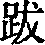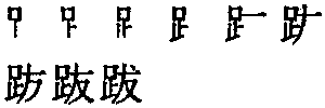 跋Bá极罕见姓氏。《续通志·氏族略》 收载,归入声部。未详其源。五代时有跋异,汧阳人,工画佛道神鬼。 跋bá❶踏草而行。馬融《長笛賦》:“蹉纖根,跋縷,膺陗阤,腹陘阻。” ❷拖轉。《漢書》揚雄《羽獵賦》:“拕蒼豨,跋犀犛。” ❸横暴。通“暴”。見下。 跋bá同“拔”。回,回转。朱庆馀《发凤翔后途中怀田少府》诗:“见酒连诗句,逢花~马头。”李商隐《偶成转韵七十二句赠四同舍》:“明年赴辟下昭桂,东郊痛哭辞兄弟。韩公堆上~马时,回望秦川树如荠。”其义皆同。 跋 跋bá踩,踏。《豳风·狼跋》一章: “狼跋其胡,载疐其尾。”毛《传》:“跋,躐。疐,跲也。老狼有胡,进则躐其胡,退则跲其尾。进退有难,然而不失其猛。”疐,zhì。颠踬。《尔雅·释言》:“跋,躐也。”躐,liè,践踏,踩。孔《疏》:“毛以为狼之老者则颔下垂胡,狼进前则躐其胡,却退则跲其尾。”跲,jiá,绊。 ☚ 践 跋涉 ☛ 跋读音b·a(ˊ),为a韵目,属a—ia—ua韵部。蒲拔切,入,末韵。 ❶在山上行走;翻山越岭。如:跋山涉水。 ❷写在书籍等后面的短文,内容大多属于评介。 上一条: 胈 下一条: 𫑃 跋叭bǎ躐(liè)。例:走路胡躐~,把鞋躐~坏了。 《尔雅》:“跋,躐也。” 跋buak5[puaɂ]❶摔倒,跌倒 ⊳昨暝~蜀倒(昨天跌了一交)。 ❷跌落 ⊳乇~对长去 (东西摔成两段)。 ❸掷 ⊳~筶杯(掷“筶杯”占卜, 参见 [筶杯])。 跋《广韵》蒲撥·末;buáh‖bá跌倒;跌落:~倒buáhdǒ(跌倒) ❍ 拄学行,一日~几落摆dǔóh gniá,zít lít buáh guǐ loh bǎi(刚学走路,一天跌好几次) ❍ 价钱~落来gèzní buáhlohlai(价钱跌下来)。《说文》:“跋,蹎跋也。”