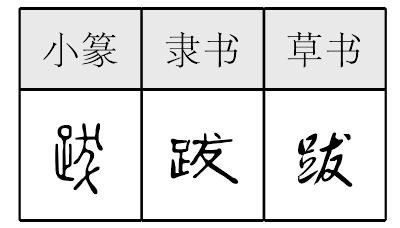 bá形声,从足,犮(bá)声,本义为仆倒,跌倒,假借为踏草而行、翻山越岭、一种文体等。 |