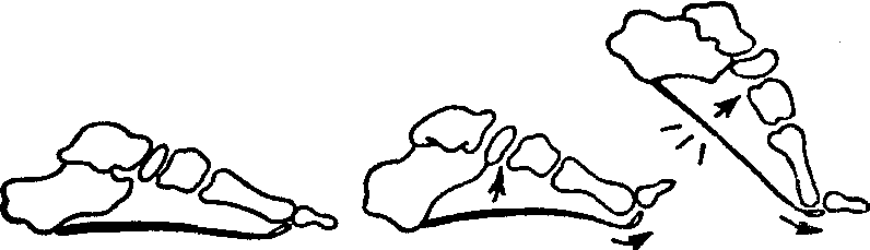 趾背伸时足弓提起,前足踏跳可损伤跖腱膜