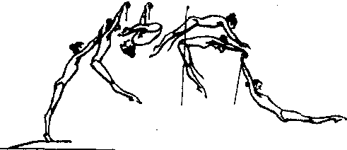 释义 | 跳起高杠悬垂分腿后空翻换握低杠 跳起高杠悬垂分腿后空翻换握低杠是高低杠的中难度上法(可作为成套中的中间难度动作存在),是70年代较为流行的上法动作。该上法同空翻类动作的“面向内高杠悬垂分腿后空翻换握低杠”大同小异。动作要领:从高杠外的面对高杠的站立开始,助跑,借助踏跳板起跳,向高杠方向摆动双臂,含胸吸腹直体向前上方跳起,双手主动正握高杠,立即含胸将肩部向上压起同时分腿收腹翻臀,完成分腿后空翻换握低杠的动作过程(参见空翻类动作的“面向内高杠悬垂分腿后空翻换握低杠长振”)。练习与帮助方法亦参照同一动作的内容。 ☚ 跳起转体360°手不撑低杠向前腹回环 跳起正反握低杠屈体分腿支撑转体180°成分腿支撑或分腿立撑 ☛ |