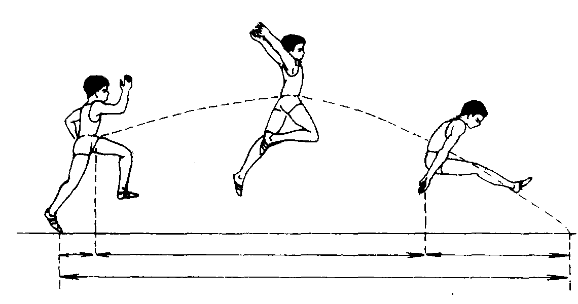跳远成绩是三部分远度的和,即L=L1+L2+L3。 ❶L1为起跳脚离地瞬间人体重心投影点至踏跳板前缘的水平距离; ❷L2为身体腾空飞行的水平距离; ❸L3为落地时身体重心与落点的水平距离。其中L2的距离对跳远成绩有决定性作用。起跳腾空时身体重心的初速度、腾起角度、腾起的高度和空气阻力等影响着L2的大小,而身体腾起的初速度最为重要。跳远助跑的速度及踏跳技术决定腾空时身体重心的初速度和腾起角度。优秀运动员身体腾起的初速度约为9.2~9.6米/秒,重心腾起角约18°—24°,腾起高度达50—75厘米,跳远成绩接近9米。跳远姿势有蹲踞式、挺身式、走步式三种。跳远运动对发展身体的灵巧性和协调性有相当影响,并能发展速度、力量等身体素质。对培养和发展学生的勇敢、果断品质有积极意义。小学生学习跳远应把助跑与起跳结合的技术作为重点,主要掌握蹲踞式腾空姿势。跳远教学应注意安全,经常保持沙坑的松软和平整。跳远课一般安排在短跑和跳高项目教学之后。 跳远比赛的主要规则是: ❶试跳成绩以运动员身体着地的最近点至起跳线的垂直距离为准。 ❷以试跳中最好一次成绩为其最后成绩。 ❸起跳时起跳脚踏出起跳线,或在落地过程中触及沙坑以外比落地点近的地面均判为试跳失败。 ☚ 背越式跳高 跳远助跑 ☛ 跳远long jump |
