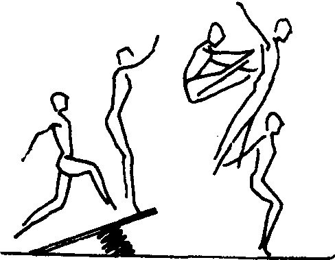 释义 | 踏跳屈体分腿跳 踏跳屈体分腿跳蹬踏弹板,使身体成上体前屈、两腿分开前平举的姿势腾空,然后挺身落下的动作。动作要领:起跳后,身体向前上方腾起时,上体前屈、两腿侧分上举,以手触脚面后,迅速伸展身体,两腿并拢落下。保护与帮助:同踏跳挺身跳。教学重点:站在弹板上做屈体分腿跳下练习,待熟练后加助跑、踏跳做完整动作练习。 踏跳屈体分腿跳 ☚ 踏跳团身跳 踏跳转体跳 ☛ |