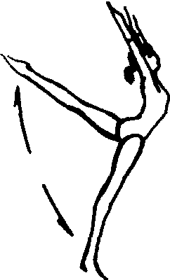 释义 | ![]() ![]() ![]() ![]() 踢腿 踢腿动力性柔韧练习方法。俗称“溜腿”。一腿直立,另一腿以髋关节为轴,依靠大腿肌群和髂腰肌的收缩与协调配合而踢起。踢法有正踢、侧踢、斜踢、倒踢、外摆、里合。另有快踢、慢踢、原地(扶物)踢、进步踢、单一踢、交替踢等练习形式。 ☚ 搬压 劈叉 ☛ 踢腿 踢腿用力做有弹性的加速摆腿动作。它能有效地发展腿、腰部肌肉力量和弹性。踢腿分为正踢、侧踢、后踢、十字踢和蹁腿。可在原地进行,也可在行进中完成。 上体直立的后踢腿 上体前倾的后踢腿 迈出一步,右腿做上踢动作,下落时要有控制,落在左脚前,然后将重心移至右脚。如此左右腿交替进行。❷侧踢腿:将腿踢向同侧耳部,要做到髋关节外展,上体正直。做行进间侧踢腿时,两臂先侧平举,左脚向前迈出一小步,右腿做侧踢,同时右臂向内绕至体前做向下按掌动作,左臂向上摆,做翻掌上托动作。其他要领同正踢腿。侧踢腿也可加转体动作。 ❸后踢腿:分为上体直立的后踢腿、上体前倾的后踢腿、上体后仰的后踢腿。 上体后仰的后踢腿 做行进间后踢腿要从两臂十字踢 下垂开始,左脚向前迈出,用足尖点地,重心落在右脚上,然后左腿用力后踢,同时两臂经前向后上摆。待左腿后踢到最大限度时再还原,并将身体重心移向左脚。如此两腿交替进行。❹十字踢:按图的做法,将腿向异侧45°方向踢去。要领同正踢腿。 ❺蹁腿:踢左腿时,要向右前45°方向踢去,然后经前至左划一个弧形。要领同正踢腿。无论哪一种方法,踢腿的发力点都在大腿根部,踢腿要猛,弧度要大,绷直膝关节和脚面,支撑腿不得弯屈。 蹁腿 ☚ 摆腿 纵叉 ☛ 踢腿 踢腿Titui提高腿部肌腱、韧带伸展性的练习。 教学重点 踢腿时,强调大腿根部的发力动作,两腿要直,并且迅速有力。 ☚ 压腿 纵叉 ☛ 踢腿kick legs 踢腿toe kick |