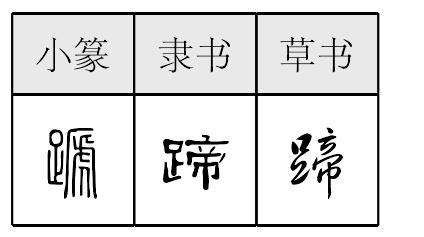 蹄蹏tí(16画) *蹄〔蹏〕tí16画 足部 牛、马、羊、猪等生在趾端的坚硬的角质物;也指有这种角质物的脚: 猪~子|马不停~。 蹄蹏tí小篆形声字。从足,虒(sī)声。声母演变如虒嗁(啼的异体字)、诉柝(tuò,古代打更用的梆子)、诵桶例。指马、牛、羊等生在趾端的角质保护物。又指有角质保护物的脚趾。现作异体字。以蹄为规范字。见《异体字表》。蹄,中古所造字。换声旁,表音较准,字形较容易,后来使用较多。从足,帝声。声母演变如帝啼、弟梯剃例。如:马不停蹄|偶蹄动物。 蹄蹏★异◎异★常◎常tí蹏,形声,从足,虒(sī)声,本义为马、驴、牛、羊、猪等脚趾端的表皮变形物,由较硬的角质层所组成,引申为马、驴、牛、羊、猪等的脚,驴等用脚踢。又作“蹄”,音符改为帝。《异体字表》以“蹏”为异体字。 |
