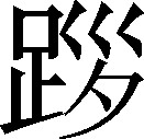 行皃。例:他走路不稳,俩人~上慢慢走。❍ 台阶下不去,要让人~上慢慢下。《集韵》:“蹙,行皃。”