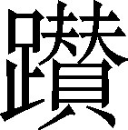 蹲。例:~腰锄地。❍ ~在碌碡上吃饭。《集韵》:“,蹲也。