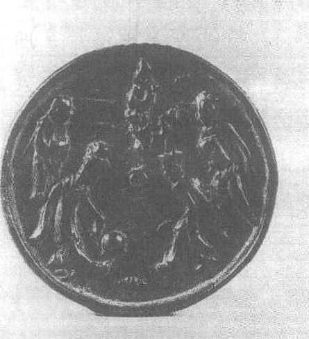 宋,径11厘米。湖南省博物馆藏。蹴鞠是我国古代的足球运动。传说起源于黄帝,或说起源于战国。蹴,即踢;鞠,唐训诂学家颜师古注“以韦为之,中实以物”即充以实物的皮球。蹴鞠亦作“蹙鞠”、“鞠”。“蹴鞠”,盛行于汉代社会各阶层和军旅之中,是带有杂技和舞蹈相混合的足球运动,发展至唐代逐渐成为竞技运动。此铜镜背纹浮雕图,是一幅充满生活气息的青年男女进行球赛的情景。图的背景是一片宽阔的草坪,后有院墙,前立一块玲珑太湖石,近处草坪上一少男少女正在对踢。少男戴无脚幞头,着衫系带,身稍向前倾,蹲步。少女头梳双髻,着对襟半长衣,一脚微抬作踢球状,富有动感。球上还隐约可见桔𨐰状缝合痕,似唐人所谓“八片尖皮”缝合的球。少男身后有一手执铃状筹码青年,凝视着双方,计失败的筹码。少女身后一位穿百折裙的女子,也关注着比赛的情况。整个画面明朗清晰,富有生活情趣。古代足球比赛的方法有两种,一种设球场,一种不设球场。前者球场正中设网状球门。《东京梦华录》记载宋徽宗做寿时,宫中举行了一场有球场的球赛。不设球场赛有两类,即分班和不分班,有一人场、二人场至十人场等十种打法。此铜镜所描绘的正是两个对踢的二人场,又叫“打二”。北京中国历史博物馆也藏有一件与此相同的蹴鞠图铜镜。