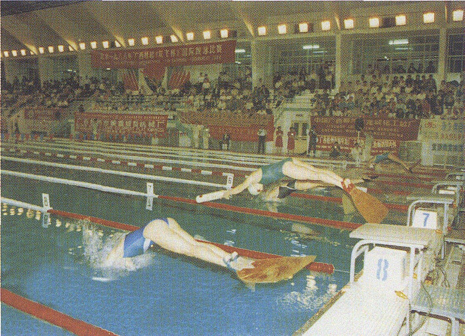 释义 | 蹼泳puyong潜水运动比赛项目。潜水在人类社会已有悠久的历史,但作为体育运动始于20世纪50年代。60年代初潜水运动有了新的发展,出现了在游泳池内进行的竞速潜泳项日,国际上把游泳池竟速潜水这个项目统称为蹼泳。潜水运动作为一项新兴的体育项目,直到1959年才在中国开展。1964年首届潜水比赛在广东湛江举行。1979年起中国潜水运动比赛项目转向世界潜联公布的蹼泳项目。在第4届全运会上蹼泳被列为比赛项目,各省、市、自治区相继组织了队伍。1979年国家体委公布了蹼泳全国记录和运动员等级标准。1986年底国家体委将游泳池竞速潜水比赛名称统一为“蹼泳竞赛”。1978年全国比赛最好成绩,男子100米蹼泳是52秒06,1979年是46秒08,1980年是45秒04。1980年女子50米屏气潜泳的成绩是20秒05。进入80年代,全国蹼泳运动取得了突破性的发展。1983年中国潜水队访问法国,在中法比赛中取得了14枚金牌;同年9月,在福州举行的全国比赛中,有12个队22人77次打破19项全国记录,广东运动员邱亚帝以15秒8的成绩超过了男子50米屏气潜泳世界纪录。1986年中国潜水队参加在西柏林举行的第4届世界蹼泳锦标赛,获2金、5银、3铜,并取得团体总分第3名(郑世玉、王军分获女子100米器泳和50米屏气潜泳冠军)。这标志着中国蹼泳运动已经冲出亚洲,走向世界。1994年10月26~30日第7届世界蹼泳锦标赛在广东举行,中国队获18枚金牌。1999年10月第6届亚洲蹼泳锦标赛在中国大连举行,中国队获得12金、13银、13铜,并获团体总分第一名;同年,在第5届世界青年蹼泳锦标赛上,狄青获男子400米器泳的冠军,王洁获得女子50米、100米蹼泳2项冠军,郑新伟也取得女子400米、800米2项的第一,骆晶晶获得50米器泳冠军。 蹼泳历年获世界冠军表