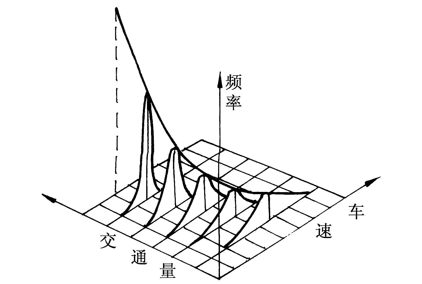 图(b) 某高速公路外侧车道车速分布与交通量的关系
