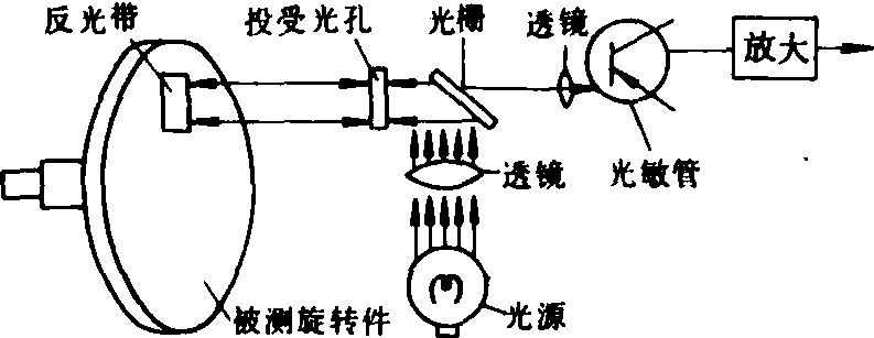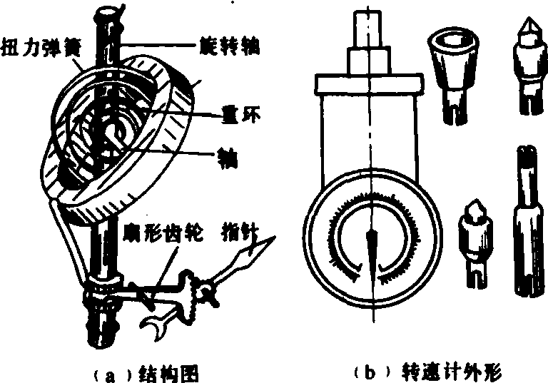 释义 | 转速计tachometer测定转动件转速的仪器。按结构原理分有离心式、磁性式、磁阻式、光电式、闪光式等。按输出方式分有模拟式与数字式两种。 图1 离心式转速计 磁性式转速计 利用电磁感应原理,把转速变为转角进行测量的仪器(图2)。磁感应系统由旋转磁钢和固定在指针轴上的铝盘组成。当转速计转轴与被测件相接,磁钢同步旋转,由于磁力线为磁盘切割,磁盘上感应电势产生电流,它与磁钢的旋转磁场相互作用,形成能带动指针轴偏转的力矩,由指针指示出被测转速值。这种转速计结构简单,维护方便,可以正、反旋转。 图2 磁性式转速计原理示意图 磁阻式转速计 根据磁阻变化生产感应电势的原理测量转速的仪器(图3)。当被测件转轴通过联轴器,带动齿轮旋转,齿轮的轮齿,依次切割永久磁钢的磁力线,引起磁阻的变化,使线圈感应出脉冲电动势,感应电动势的频率与被测转速成正比,通过二次仪表就可以指示出被测转速值。这种仪表适用于高速件的测量。 图3 磁阻式转速计原理示意图 光电式转速计 利用光电效应原理测量转速的仪器(图4)。采用一套光学系统,由光源发出光线,经透镜聚焦,通过光栅由投受光孔射出,照到被测旋转件上的反光带上,光线再由反光带反射到投受光孔,经透镜聚焦而射到光敏管上,使光敏元件感光。这样转轴每旋转一圈,反光带反射一个光点,光敏元件感光一次,发出一个脉冲信号。这个电脉冲信号经脉冲放大、整形,由单稳电路输出信号,显示装置就显示出相应的被测转速值。这种仪表不与被测对象直接接触,不增加被测件的负荷,使用方便,具有较高灵敏度和较宽的频率范围。但光学系统对使用环境有一定要求。 图4 光电式转速计原理示意图 频闪式转速计 利用已知频率的闪光,以非接触方式测量出旋转物体的转速。这种仪表如操作使用正确,可以得到较高测量精度。但使用调整繁琐,对被测对象要求转速稳定,否则难于跟踪。 转速计tachometer 转速计tachometer 转速计tachometer |
