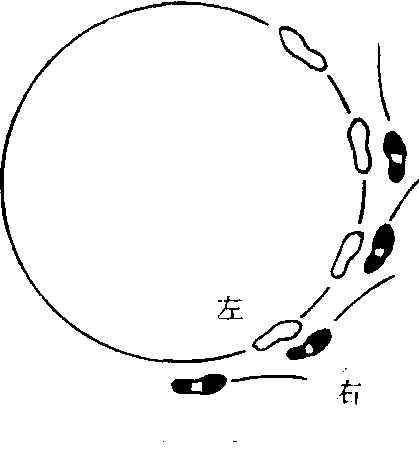 ❸短步转弯时支撑脚踝关节前屈,重心偏向前脚掌,防止后坐动作。左脚左转方向不可过大,以免造成重心外甩。