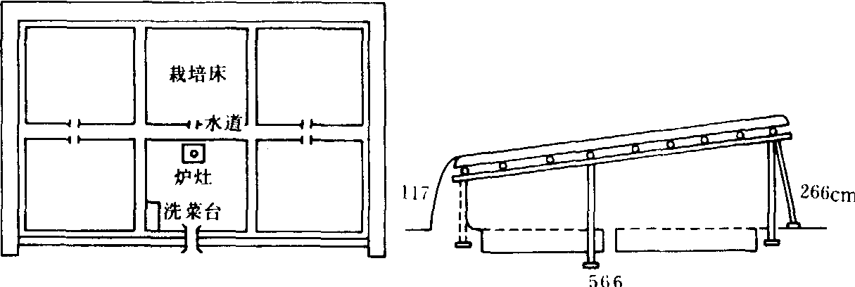 释义 | 软化栽培blanching culture将某一生长阶段的蔬菜栽植在黑暗(或弱光)和温暖潮湿的环境中,生长出具有独特风味产品的一种保护栽培方法。软化栽培的产品含有少量叶绿素,大多呈现白绿、黄、黄白或紫红等颜色,组织柔软或脆嫩,具有较高的商品价值,是冬、春季上市的鲜菜之一。 图1 窑洞示意图 用温室软化栽培的:这种温室比一般的栽培温室矮,栽培床较宽,三面为墙,仅南侧为采光面。采光材料一般为油纸或塑料薄膜,夜间加盖草苫。温室中央设有炉灶加温(没有烟道和烟囱),栽培床在地表以下。室内气温可经常保持25℃左右,夜间比白天要高2~3℃。相对湿度75~80%,这样的温室栽植韭菜的根茎,每20天可收割一次青韭。这种温室逐渐减少,而被塑料薄膜温室所代替,但在室内要加盖黑色薄膜或草苫。 图2 稻草蓬软化韭菜示意图 图3 软化温室栽培畦平面布局(左)和断面(右)示意图 用窑洞软化栽培的:一般建在背风向阳处。窑洞宽3.3米,高2米,长11~33米。窑口用砖或土坯封住仅留一小门。门内建有火炉或火炕等补充加温设备,中央有走道,两侧为软化栽培床。此窑内温度变化小,能经常保持15℃以上,韭菜根茎萌芽后15天左右就可收割一次韭黄。人工加温时燃料燃烧可能产生大量的一氧化碳和二氧化碳以及二氧化硫等,不但降低商品质量,而且对人体有害,在栽培时要注意通风换气。 软化栽培是保护地生产中特殊的栽培方法。在栽培管理中要注意: ❶预先要培养健壮的植株,或具有丰富营养的贮藏器官,以供软化生长中对养分的需要。 ❷不必有较大的昼夜温差,以求快速生长,但在不同生长阶段要求的温度不同,温度过高,则产量低而质量差。 ❸既要有较高的空气湿度和土壤湿度,又要注意适当通风,管理不善易发生腐烂现象。 ❹根据商品质量要求分期培土,调节光照,以得到不同颜色的软化产品。 ❺必要时,适时适量追肥,以促进生长。 软化栽培blanching culture将某一生长阶段的蔬菜栽培在黑暗和温暖潮湿的环境中,生长出具有独特风味、柔嫩或脆嫩产品的一种保护地栽培方式。中国,早在两千年前就有利用原始温室进行葱、韭软化栽培的记载。软化栽培主要包括韭黄、蒜黄、大葱、菊苣和芹菜等。方法有培土、覆盖、缚叶或将根株移入地窖、温室等设施,造成黑暗的环境,并保持适当的温湿度,使茎叶失绿,质地柔软脆嫩,有较高的商品价值。 软化栽培指对蔬菜的营养器官采取培土、覆盖或放入地窖等措施,使茎叶不见光,叶绿素消失,组织柔嫩,纤维减少,以提高其品质和风味的一种栽培方法。如韭黄、蒜黄等即是经软化栽培的产品。 软化栽培blanching culture |