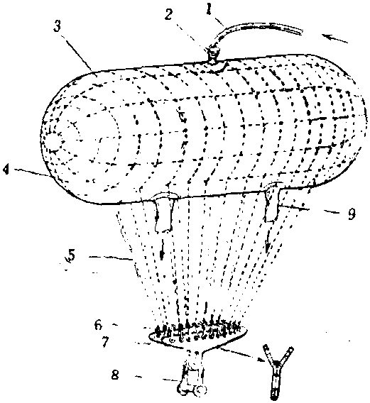 1—充气皮管; 2—进气管接头3—软式浮筒; 4—网套;