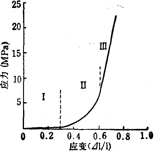 (1)拉伸试验: 皮肤在体外单向拉伸试验时的应力和应变关系曲线如图所示,它可分为三部分: 阶段I表示在低载荷时皮肤的快速伸长; 阶段II为曲线高度弯曲部分,表示皮肤正在变硬;阶段III表示皮肤相当硬,即拉伸应力相当高时,伸长应变的改变却相当小。拉伸试验表明,皮肤的力学性质是非线性的,这是由于皮肤含有高胶原含量的结果。皮肤在加载和卸载时所得的应力-应变曲线也会形成滞后环。另外,最初几个循环的特性曲线可不重合,需要经过五至六个循环才能得到稳定的应力和应变关系曲线。Langer在1862年用圆针在人尸体的皮肤上扎孔,发现扎孔形状不是圆的,而是椭圆形的或更经常