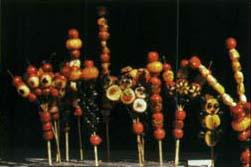 释义 | 冰糖葫芦 冰糖葫芦是一种风味小吃,用竹签将山里红穿成一串,蘸上熔化的冰糖或麦芽糖而制成,外甜内酸。吃冰糖葫芦是北京冬季的一道风景。旧时,在春节庙会上糖葫芦是必不可少的小吃。现在在糖葫芦的吃法也改进了,品种也增多了。有的将山楂籽挖出,制成无核糖葫芦,有的将香蕉、草莓、海棠、桔子等时令水果制成糖葫芦。严冬时节,举著一串红红的冰糖葫芦,让人感到火红而喜庆。 |