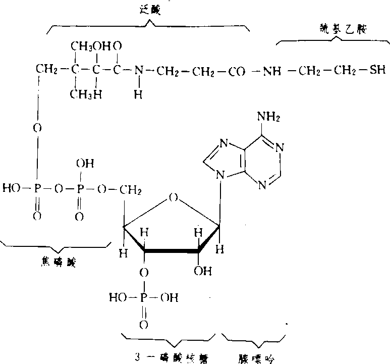 释义 | 辅酶Acoenzyme A转移酶辅酶的一种,简写为CoA。为3′-磷酸腺苷与泛酰-β-巯基乙胺-4′-焦磷酸形成的酯。含有维生素B3。巯基是其功能基团,故又可写成CoASH。为一些酰基转移酶的辅酶,在代谢反应中起传递酰基的作用。 辅酶Acoenzyme A, Co A系体内蛋白质、糖、脂肪代谢过程中起重要作用的一种酶。本品是自鲜酵母中提取的,含泛酸、腺嘌呤、核糖、半胱胺酸、磷酸等。对乙酰胆碱的合成、肝糖元的积存、降低胆固醇含量、血脂调节等均有重要作用。临床用于原发性血小板减少症、白细胞减少症、功能性低热、肝脏疾病、动脉硬化、心肌梗塞、肾功能减退、尿毒症等,均可作为辅助药。本品粉针每支50u。静滴1日1次,1次50u,用生理盐水或5~10%葡萄糖500ml溶解稀释后滴注。一般多配伍成能量注射液用(详见能量注射液条)。 辅酶A简称“CoA”。含维生素泛酸的一种复合核苷酸。分子中含有泛酰巯基乙胺,是乙酰转移酶的辅酶。在代谢中作为一种乙酰基或其他酰基的载体,这些酰基连结在辅酶A的巯基上形成硫酯,故有传递酰基的作用。 辅酶A 辅酶A辅酶A(coenzyme A.CoA)为体内乙酰化作用的主要辅酶的简称。1945年Lipmann发现它是鸽肝系统发生磺胺乙酰化反应的一个必需组分。同时,其他作者亦观察到在乙酰胆碱的合成中需要一个激活剂,这个激活剂就是辅酶A。目前辅酶A是从微生物发酵或从鲜酵母中提取而得。为白色粉末,有特殊的硫醇气味。溶于水,不溶于乙醇、乙醚、丙酮。在酸性溶液中较稳定,在碱性溶液中易失活变性,在中性pH条件下受热压处理,活性损失最小,pH4时活性损失最大。其精制品在有稳定剂,如半胱氨酸或其盐类存在下,耐热性较好。辅酶A极易被空气氧化成双硫型化合物(CoA-S-S-CoA),称为氧化型CoA。氧化型在体内外遇还原型物质又转成有活性的还原型。干燥品宜贮于真空安瓿中。 辅酶A最基本的功能是作为酰基载体而参与多种酶体系的反应。结构中的巯基(-SH)与各种酰基或硫酯键,通过其巯基的反复酰化和脱酰化而参与各种转酰基作用。反应图式如下: 因此它在脂肪酸和碳水化合物的中间代谢、氨基酸和胆碱的乙酰化、卟啉和胆甾醇的生物合成等方面都起着重要的作用。它还参加脂肪的氧化和合成、碳水化合物代谢中的三羧酸循环。 由于辅酶A是调节糖、脂肪及蛋白质代谢的重要因子,特别是在促进乙酰胆碱的合成、降低血中胆固醇、增加肝糖原的积累、促进甾体物质的合成中起着重要作用。用于冠状动脉粥样硬化、脂肪肝、肝昏迷、肝炎、慢性肾功能不全所引起的急性无尿等,作为辅助治疗药物。急性心肌梗塞者忌用。 肌内注射或静脉注射(粉针剂): 以生理盐水或5%葡萄糖注射液溶解后使用。每日1次或隔日一次,每次50U,一般以7~14日为一疗程。 ☚ 辅酶 诊断用酶试剂 ☛ |