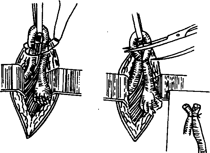 释义 | 输卵管结扎术 输卵管结扎术这是一种通过外科手术将输卵管结扎剪断的永久性节育措施(见图4.3-1,图4.3-2)。输卵管的生理功能是精子获能、卵子受精的地方和输送受精卵到达宫腔着床的通道,若将其结扎阻断,受精卵无法形成,即可达到不再生育的目的。这对全身没有什么影响,也不会影响女性的其他生理特征和功能。因为维持女性生理特征的是卵巢分泌的女性激素,它们是通过血液吸收进入血循环而发挥作用的,与输卵管通畅与否毫不相干。所以这是一种安全、可靠、一劳永逸的节育方法,适合于已生育多个子女、避孕屡次失败、多次人工流产的妇女,或因患有某种疾病不宜生育的妇女。在我国约有7500万以上妇女行绝育术,占各种避孕方法的38.24%。手术时进入腹腔的途径有两种:经腹壁切口进入的称小切口绝育术,经阴道穹窿切开进入的称阴道式绝育术;现在国内外普遍采用的是小切口绝育术;切口长约3厘米。在下腹中线脐与耻骨连合之间,进入腹腔后找出双侧输卵管分别在峡部结扎剪断后,将输卵管放回原处,再缝合腹壁,手术简单快捷,一般在局部麻醉下进行,术后很快恢复,结扎输卵管的方法早先是用对折结扎切除法。因它失败率偏高,为0.5%—1.5%,结扎卵管时又可能影响输卵管系膜血循环而间接影响卵巢功能,以及切除的卵管过长影响以后复孕术的成功等缺点,近20年多改用抽心包埋法:即峡部输卵管自浆膜下游离后剪去1厘米,两断端分别结扎,然后将近侧端包埋缝合在浆膜内,远侧端留在浆膜外,这样使二断端间有浆膜隔离,不易再自然接通或发生新生伞,从而降低失败率为0.2%—0.5%,而且输卵管系膜基本无损伤,并发症少。手术的禁忌症: 图4.3-1 双折结扎切除术 图4.3-2 输卵管抽心包埋法 ☚ 4.3 绝育术 输卵管粘堵绝育术 ☛ 输卵管结扎术ligation of oviduct系输卵管绝育术中最重要的一种。此种手术有经腹部及经阴道两种,其中经腹部手术不易感染,操作方便,手术简单,多被采用。凡是已婚妇女,为实行计划生育,自愿要求做绝育手术而又无禁忌证以及因某些疾病不宜生育者均可行输卵管结扎术。但生殖器官炎症、各种疾病的急性期、产后大出血、休克、神经官能症等不适宜做此种手术。 |