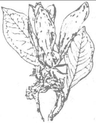 这首咏辛夷花的诗是从辛夷花又叫木笔花这点着眼的。辛夷,学名木兰,别名紫玉兰、木笔花、女郎花。早春先叶开花。在含苞待放时,恰似蘸着紫红颜料的毛笔,尖直挺秀,有如笔形,故有木笔花之称。 第一句“梦中曾见笔生花,锦字还将气象夸”,用的是梦笔生花之典。据王仁裕《开元天宝遗事·梦笔头生花》说,李白小时候,梦见自己所用的笔尖端开花,长大后便成为文笔神妙的大诗人,后人便以“梦笔生花”称才思敏捷的人。“梦中曾见笔生花”意即指此,“锦字还将气象夸”也含典故。东晋窦滔被流放,他的妻子苏蕙思念他,就用五色丝织成色彩斑斓的回文璇图寄给他,以表达自己心曲。因辛夷花又名女郎花。宋陆游曾有诗《女郎花》说:“粲粲女郎花,忽满庭前枝。”白居易《戏题木兰花》也曾说:“怪得独饶脂粉态,木兰曾作女郎来。”都是从辛夷花的女郎花这一别名着眼。张新诗的这一句实际上是将二者都包含在内了。不过,这两种别名又用得很巧妙,而且相互间还紧密相关。笔生花即木笔生花之意,既是笔,那么就与下面的锦字发生联系了。用笔可以诉说梦中事,可以写梦中事,这又与锦字这一典故的苏蕙作回文璇诗一事相关联了。这就令人在不知不觉中领略到辛夷花的外形特征和内在精神。接着一句“谁信花中原有笔”则是进一步申发梦中见笔之意,“谁信”一词突出了辛夷花的形状如笔的特征。“毫端方欲吐春霞”仍是围绕笔作文章,笔之端正欲吐出绚丽多彩的春天的霞光。这是说妙笔生花,定会有文采斐然有如春霞般绚丽的好文章出世。当然,这也是辛夷花,即木笔花在早春时节开放时情景的形象写照。其妙处仍在紧紧围绕辛夷花状似笔的外形特征生发,故能给人以鲜明的印象。特别是“毫端方欲吐春霞”一句,将辛夷花的含苞待放情状写得活灵活现,是全诗点晴之笔,也是描绘木笔花——辛夷花难得佳句。 从辛夷花状似笔而称木笔花这点着眼的当然不始于张新。旧说唐人欧阳炯《辛夷花》写道:“含锋新吐嫩红芽,势欲书空映早霞。应是玉皇曾掷笔,落来地上长成花。”白居易《题灵隐寺红辛夷花戏酬工人》中也说“紫粉笔含尖火焰。”明代书画家、文学家陈继儒《辛夷》诗写道:“春雨湿窗纱,辛夷弄影斜。曾窥江梦彩,笔笔忽生花。”用的又是南朝诗人江淹梦得五彩笔而才思华美的典故,各有独到之处。 辛夷xīn yí香木名,也叫木笔树。树身可高达二、三丈,花很香。韩愈《感春》:“辛夷高花最先开,青天露出始此回。” 辛夷(1次) 香木名。开花很早,蓓蕾似笔头,故又称迎春、木筆。露申~《章·涉》 辛夷xīn yí木兰一类的花树,又名木笔、迎春。《湘夫人》:“辛夷楣兮药房。”洪兴祖补注:“《本草》云,辛夷树大连合抱,高数仞。此花初发如笔,北人呼为木笔。其花最早,南人呼为迎春。”《涉江》:“露申辛夷,死林薄兮。” 古代名物 > 花卉類 > 花部 > 落葉木本 > 辛夷 辛夷 xīnyí 亦作“新夷”,亦稱“侯桃”、“房木”、“木筆”、“迎春”。苞初生如尖筆頭,故有木筆之稱。木蘭科,落葉灌木。葉橢圓或倒卵形。花外輪被片帶緑色,披針形,早落。内二輪被片紫紅色。宜植庭園,供觀賞。產於我國鄂、川、滇。始載於先秦典籍。戰國楚·宋玉《風賦》:“㮣新夷,被荑楊。”漢·東方朔《七諫·自悲》:“雜橘柚以爲囿兮,列新夷與椒楨。”宋·陸游《幽居初夏》詩:“籜龍已過頭番筍,木筆猶開第一花。”明·李時珍《本草綱目·木一·辛夷》:“〔釋名〕辛雉、侯桃、房木、木筆、迎春。” 辛夷 古代名物 > 醫藥類(上) > 木部 > 花實 > 薪夷 > 辛夷 辛夷 xīnyí 同“薪夷”。 辛夷xīn yí旧时花业谓木笔花。《切口·花业》:“辛夷: 木笔花也。” 辛夷1【同义】总目录 迎春辛夷房木侯桃 辛夷2【同义】总目录 辛夷书客女郎花新夷 辛夷flos magnoliae辛温解表药。出《神农本草经》。见《兽药规范》(二部)。又名木笔花、迎春、侯桃。为木兰科植物望春花Magnolia biondii Ramp.或玉兰M.denudata Desr.等的花蕾。捣碎生用或炒炭用。主产河南、四川、安徽、浙江等地。辛、温。入肺、胃经。功能疏风解表,通利肺窍。《名医别录》:“温中解肌,利九窍,通鼻塞。”主治:❶脑颡黄,常与知母、黄柏、沙参、木香、郁金、明矾等配伍,或与金银花、薄荷叶、酒黄柏、酒知母、香白芷、射干等同用,如辛夷散。 辛夷药名。出 《神农本草经》。又名迎春、木笔花、姜朴花。为木兰科植物望春花Magnoliabiondii Pamp. 玉兰M.denudata Desr. 或武当玉兰M.sprengeri Pamp. 等的花蕾。主产河南、四川、安徽、浙江等地。辛,温。入肺、胃经。散风寒,通鼻窍。治鼻渊,风寒感冒之头痛、鼻塞、流涕。煎服: 3~9克。外用: 适量,研末㗜鼻; 或以其蒸馏水滴鼻。玉兰花蕾含挥发油,中含柠檬醛、丁香油酚,18桉叶素、茴香醚等。辛夷花中含挥发油,主为丁香油酚、黄樟醚(Safrole)、柠檬醛、茴香醚 (Anethole)、黄酮苷,花色苷。挥发油有收缩鼻黏膜血管、健胃作用,煎剂给麻醉兔、猫、狗静脉注射,有降压作用,但挥发油无降压作用;对动物在体、离体子宫呈兴奋作用;体外对真菌、细菌、昆虫有抑制作用。 辛夷xīn yí《本草纲目》木部第34卷辛夷(39)。药名。 辛夷xīnyí中药名。出《神农本草经》。别名木笔花。为木兰科植物望春花Magnoliabiondii Pamp. 或玉兰M. denudata Desr. 等的花蕾。主产于河南、四川、安