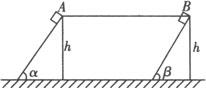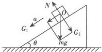 如上图所示,由于物体只在斜面上加速下滑,加速度a及合外力沿斜面向下.将重力mg正交分解成G1与G2,N的大小等于G2.合力为G1=mgsinθ=ma,a=gsinθ.又设斜面长为s.下滑时间为t,则有 由于α≠β,故tA≠tB,则A错误,故D正确. 答 D. |