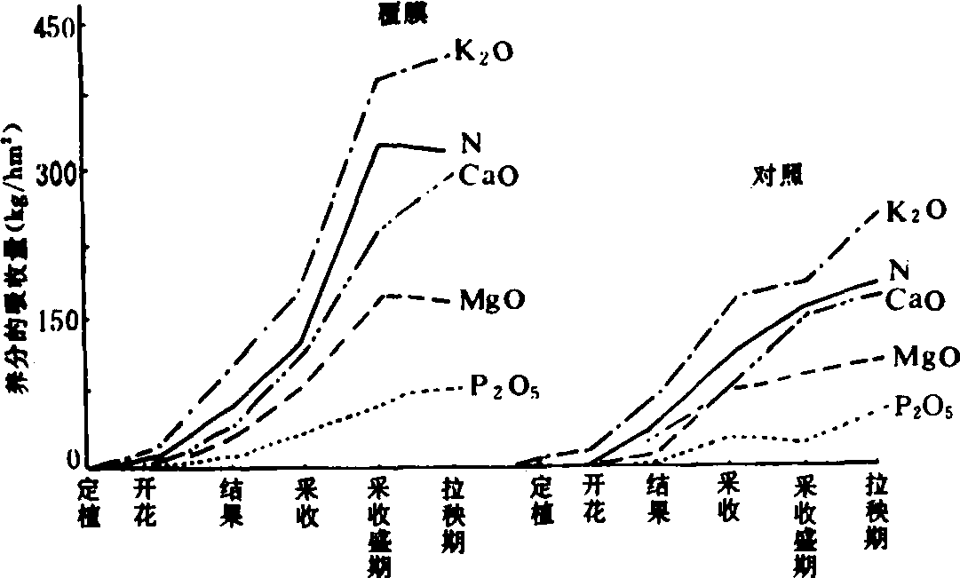 施肥技术 苗床施肥 辣椒苗龄长达100~120多天,因此床土要选用富含腐殖质和团粒结构良好的土壤。在11平方米的育苗床中可施入150~200千克腐熟的有机肥,与园土混合均匀,然后再施P2O50.15~0.31千克,翻耕3~4遍,整平床土后准备播种。育苗期内一般不再追肥,如幼苗生长缓慢、叶片狭小、茎秆细弱时,可在定植前15~20天,随水追施硫酸铵或氮、磷、钾复合肥料1千克左右。 基肥 辣椒生长期长,若越夏栽培可长达8~9个月。植株根系不发达,根量少而入土浅,但耐肥力强,肥料浓度较高时,生育也不易受到抑制。因此应施足基肥。据对高产田块每公顷产量75吨以上调查,每公顷应施优质有机肥为75~120吨。并配施磷、钾肥,每公顷P2O556~135千克,K2O185~225千克。整地前撒施基肥量的60%,定植时条施40%。 追肥 辣椒定植时地温低,要以促根发秧为主。在浇缓苗水时,可结合追施人粪尿。当蹲苗期结束,门椒以上的茎叶长出3~5节,果实直径达到2、3厘米大小时,及时浇一次催果水,同时每公顷追施腐熟人粪尿225~300吨或施N45~60千克,隔1次清水后,再追施第2次氮肥,以促秧攻果,增加前期产量,施肥量同前。其后植株秧果繁茂,短枝分生很多,进入果实盛产期,为了防止雨季植株倒伏,结合培土可每公顷追施有机肥20~30吨或施氮素95~120千克,有利于保秧保果。培土后要及时浇水,恢复根系的正常生长。进入雨季后,为了防止植株雨后脱肥,可施化肥1次,每公顷追施N素80~95千克,促使植株继续开花结果。如果雨水频繁,氮肥不能随水追施时,可在雨前沿着垄的两侧撒施,但要注意均匀,勿撒在叶片上。雨季过后,植株进入缓秧复壮期,此时日照充足,气温凉爽,有利于辣椒生长,进入第二次开花坐果,出现第二次产量高峰,为保证此期果实迅速膨大,要及时浇水追肥,每公顷可追氮素70~105千克。天气凉爽时要抓紧时机追施粪水,促进早开花、早坐果。追肥过晚,肥效不佳,植株易贪青生长,翻花过多,幼果不易成熟。 在辣椒开花结果期,还可进行叶面追肥,使用0.5%尿素加0.2%~0.3%的磷酸二氢钾,可提高结果数及改善果实品质。 |