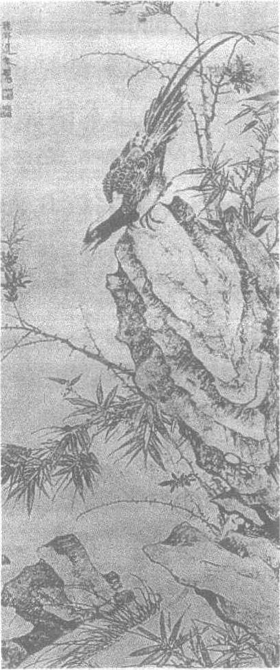 释义 | 边鲁《起居平安图》 边鲁《起居平安图》纸本,墨笔画。纵118.5厘米,横49.6厘米。现藏天津艺术博物馆。画中一巨石上立一锦鸡,扬尾低头张喙鸣叫。石旁有竹枝、枸杞、兰草之属。锦鸡刻画细微,石勾皴结合,其它形象刻画的也很认真,双勾加淡墨染。有宋画精密不苟的韵致。画左上角自识:“魏郡边鲁制。” 边鲁《起居平安图》 此图的寓意,可从当时王逢所写的《边至愚竹雉图歌并序》得到启示 “至愚讳鲁生,宣城人,材器超绝,以南台宣使奉台命西谕时,尝为铁崖杨提学(维桢)写此图。后至愚竟以不屈死。朝廷追赐南台管勾。铁崖既序其事,复征予为之歌,曰: