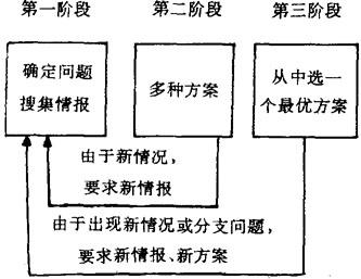 释义 | 决策过程理论 由决策理论学派的主要代表人物西蒙提出的关于决策程序的理论。 他认为,决策不仅仅是一个选择活动,而且是一个过程。这个过程包括三个阶段: ❷ 拟订计划阶段。以企业要解决的问题为目标,根据搜集的情报,拟订几种方案。 根据当时的情况和对未来的预测,从拟订的各种方案中选择一个最佳方案。西蒙认为,以上三个阶段,每个阶段又是一个复杂的决策过程。西蒙还把三个阶段形象地描绘出来。 图示如下; |