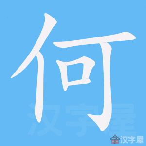 字源解说 何,甲骨文 = (伸手的人)+ (戈戟),表示士卒肩扛戈戟。有的甲骨文 加“口” ,表示守关士卒 手持 戈戟 ,盘问 路人。造字本义:守关的士卒肩扛戈戟,盘问过往行人。金文 将甲骨文字形 中的“口” 与“戈” 构成的 合写成“可” ,并使“可”成为“何”字形旁兼声旁的字件。至此“何”的“戈”形消失,“武气”不再。篆文 承续金文字形。 附 文言版《説文解字》:何,儋也。从人,可聲。 附 白话版《说文解字》:何,挑担。字形采用“人”作边旁,“可”作声旁。 引申线索