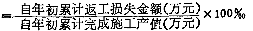 返工损失率是指在施工过程或交工验收过程中,由于工程质量等原因需要返工时发生的各项直接费用,包括返工时的人工费、材料费、机械使用费等,以及一定数额的管理费。统计上称为返工损失金额。返工损失仍计入各项工程成本。 返工损失对于施工企业来说是一种负效益,应该尽量避免。按照国家规定,要考核施工企业的返工损失率,所谓返工损失率即返工损失金额和施工产值的比率。其计算公式为: