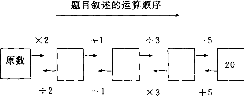 释义 | 还原问题 还原问题Huanyuan wenti已知一个数经过若干步运算后所得的结果,求原来这个数的应用题。解这类问题,可按题目所叙述的运算顺序,利用加与减、乘与除的逆运算关系, 从已知的最后结果出发, 逐步逆推, 直至求得原数。例1: 某数乘以2, 加1, 再除以3, 又减去5, 得20, 某数是多少?此题的逆推过程如下图所示: 解题的运算顺序>列成算式是: [(20+5) ×3-1] ÷2=37。 还原问题, 也可能是已知几个数经过若干组运算所得结果,求这几个数。例2:有甲、乙、丙三个油桶,若盛油若干公斤,先将甲桶的油倒入乙、丙两桶,使各增加原有油的一倍,再将乙桶的油倒入丙、甲两桶,使它们现有的油各增加一倍, 最后同样将丙桶的油倒入甲、乙两桶,这样各桶的油皆为16公斤,问各桶原来盛油多少公斤? 第三次倒油的结果是各桶都是16公斤, 那么当丙桶油未倒入甲、乙两桶之前应该是甲桶16÷2=8 (公斤), 乙桶16÷2=8(公斤),丙桶16+8+8=32公斤。这就是第二次倒油的结果, 即乙桶油倒入甲、丙两桶之后的结果,因此乙桶油未倒入甲、乙两桶之前应该是:甲桶8÷2=4(公斤);丙桶32÷2=16 (公斤); 乙桶8+4+16=28 (公斤)。这就是第一次倒油的结果,即甲桶油倒入乙、丙两桶之后的结果,因此各桶原来盛油应该是:乙桶28÷2=14 (公斤);丙桶16÷2=8 (公斤); 甲桶4+14+8=26 (公斤)。 ☚ 和差问题 盈亏问题 ☛ |